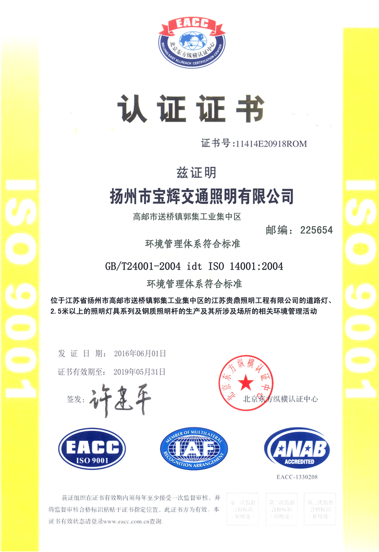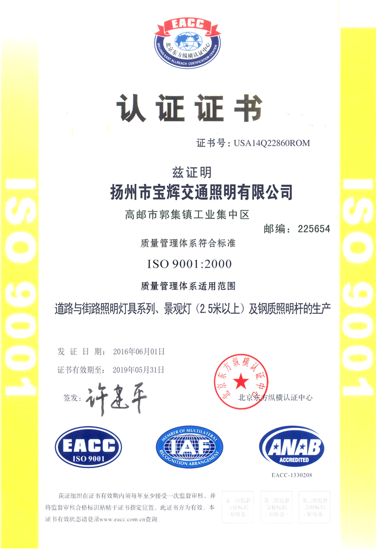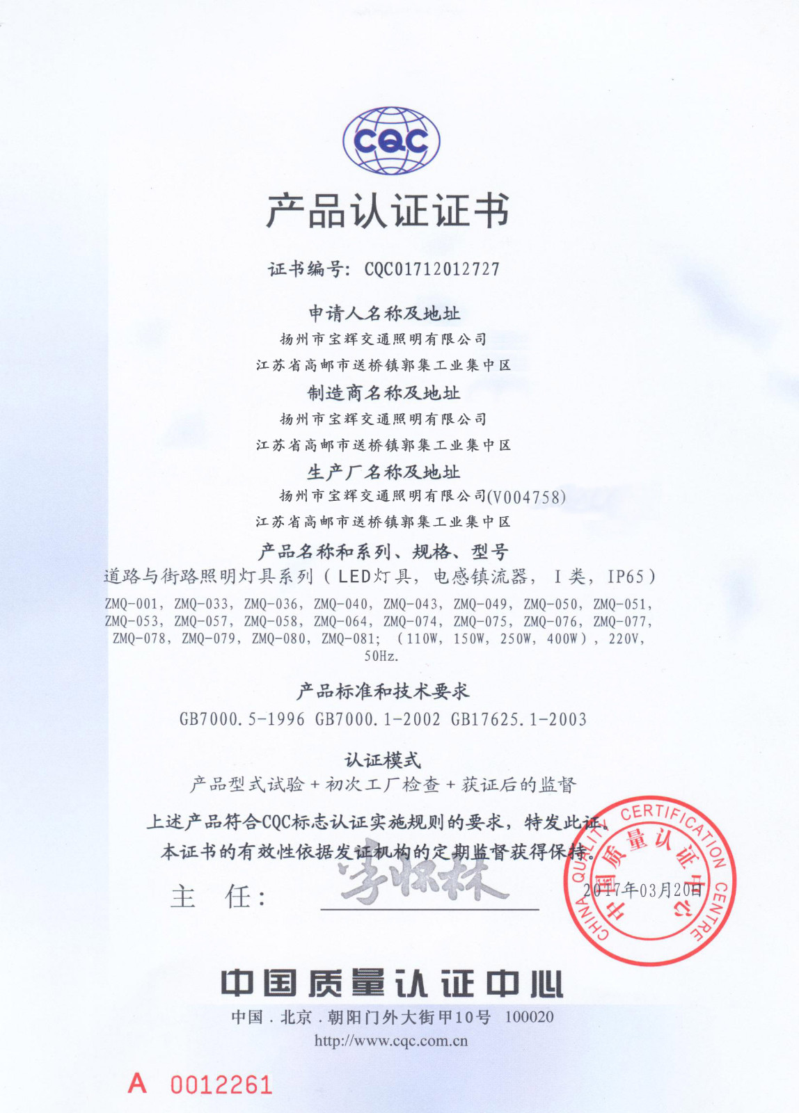 CQC道路燈產(chǎn)品認(rèn)證證書(shū)
